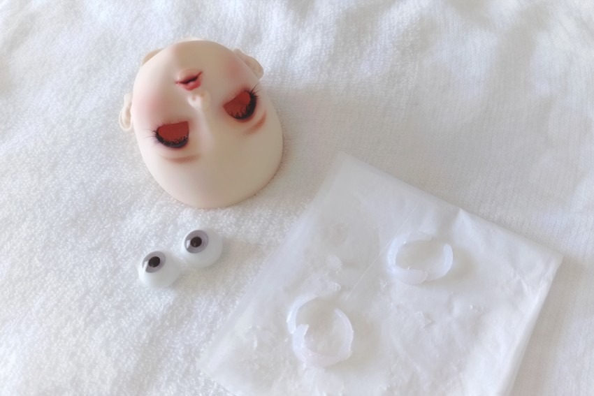 過去にイオちゃんとマオちゃんのグルーも自分で外していますが、イオちゃんはドライヤーで温めて剥がし、マオちゃんはドライヤー&残りを溶剤使用って感じだったので(まつげが熱でちょっと変形しちゃった)、最初から全部溶剤で外すのは初めてでした。